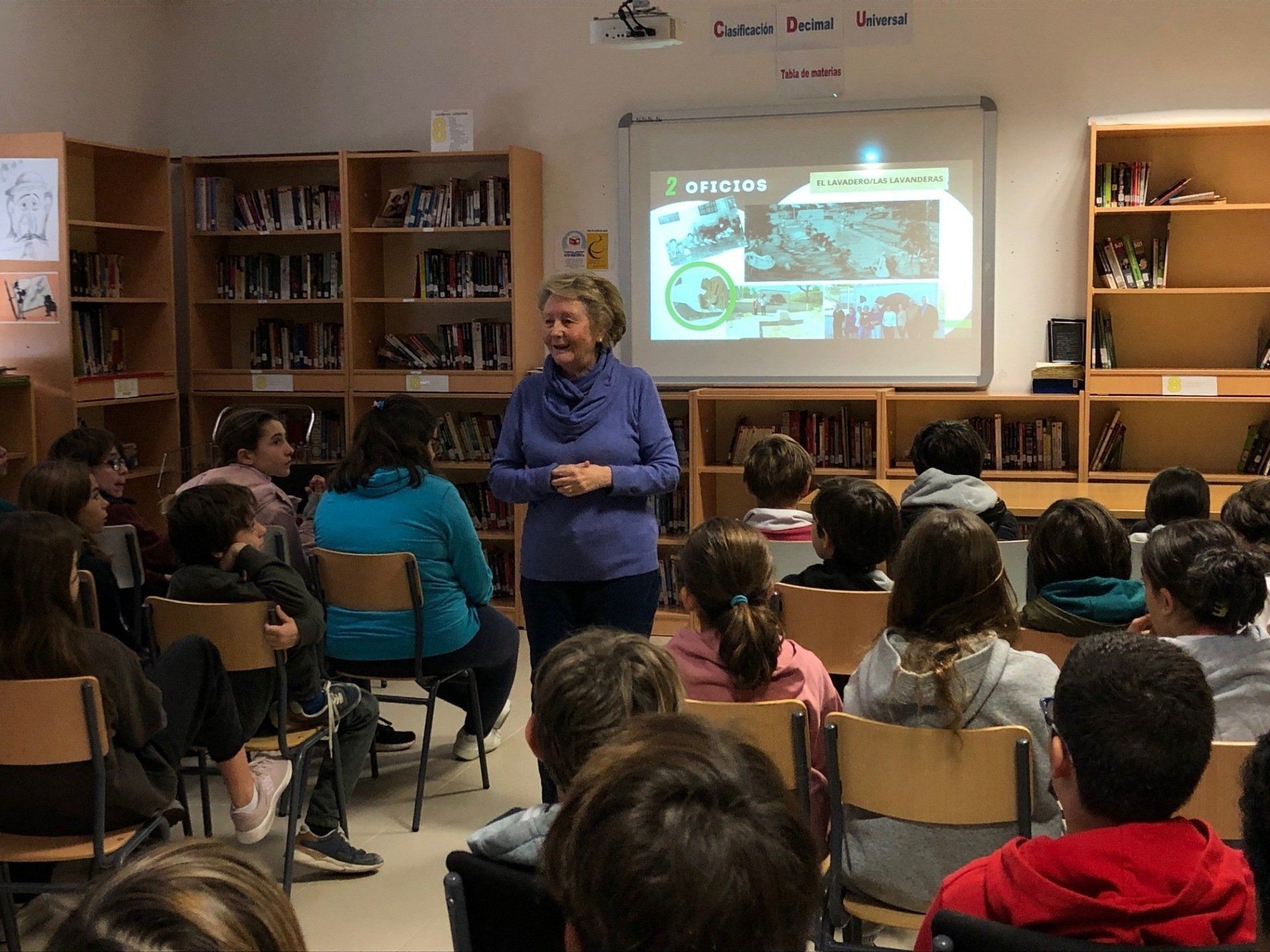 Hoy hemos tenido una visita especial. Ha venido al colegio Esperanza Morón que es cronista de la villa de Pozuelo de Alarcón, doctora y experta en la historia loca l. Además desarrolló su profesión como maestra en un colegio del municipio. La invitamos para que nos hablase de la "Historia del agua en Pozuelo" ya que tiene que ver con la cultura siendo una parte de nuestro proyecto Global Scholars en el que están participando los alumnos de 6º de Primaria y 1º de ESO (programa). Nos hizo un interesante recorrido por las fuentes más emblemáticas de municipio deteniéndose en los oficios que tienen que ver con el agua en los lugares próximos a estas. Por ejemplo, la Fuente de la Poza en la que las mujeres de Pozuelo se ganaban la vida como lavanderas aprovechando la calidad de las aguas. También hay otros oficios como los curtidos o la agricultura. Nos hemos situado en el mapa relacionando la historia con los lugares que conocemos o las calles en las que vivimos. Ha sido, sin duda, una buena experiencia gracias a la información de esta experta a la que agradecemos su visita. Por cierto, Esperanza Morón también es Presidenta de la asociación "La Poza" dedicada a recuperar y mantener vivas la cultura y tradiciones de Pozuelo de Alarcón.