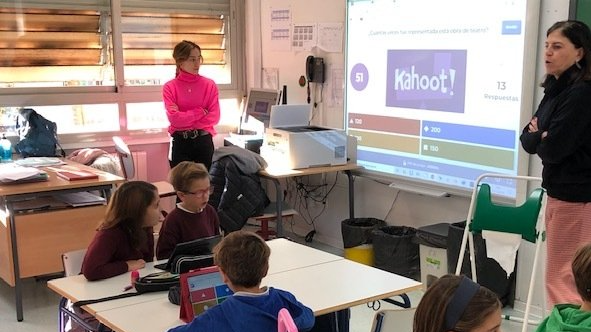 Los alumnos de 2º de Primaria han conocido quién era Federico García Lorca gracias a Ana, profesora en prácticas. Para ello han repasado lo más importante de la vida del ilustre poeta en clase. Pero para repasar lo aprendido han participado en una nueva forma de probar sus conocimientos. Kahoot es una herramienta gratuita muy útil para profesores y estudiantes que permite aprender y repasar conceptos de forma muy entretenida, ya que funciona como si se tratara de un concurso. La dinámica es sencilla. Te inscribes en la clase, se lanzan las preguntas con un tiempo máximo para responder y conocemos los resultados. Se presentan en forma de ranking de una forma muy animada. Además permite que se incorpore la competencia digital en el aula, lo que es un objetivo de este año para el centro que impulsa el Plan Digital. ¿Queréis ver qué pasó?