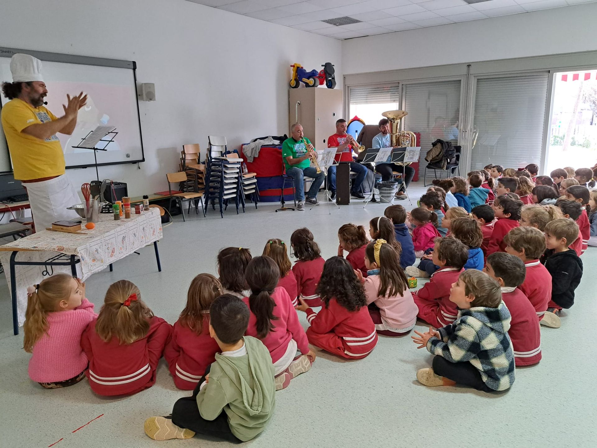 El pasado miércoles 1 de marzo tuvimos en el colegio un concierto pedagógico para todos los alumnos de Infantil que organizó el Ayuntamiento de Pozuelo de Alarcón, a través de la Concejalía de Educación e interpretado por profesores de Música de la Escuela Municipal de Música y Danza (EMMD). Una actividad divertida, con ritmo y con la participación de todos los niños. ¡Los músicos elaboraron un menú musical y fue emocionante! En esta ocasión el vídeo que os hemos preparado incluye una selección para que "repaséis" con vuestros hijos/as las divertidas canciones que aprendieron.